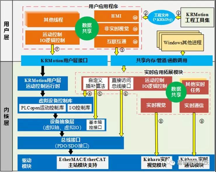 KRMotion是什么KRMotion是一款基于德國Kithara公司Windows實時拓展套件開發的開放式軟運動控制平臺,該平臺構建了各類數據采集、運動控制、邏輯控制、實時視覺等功能庫以及系統配置工具,提供了一個基于IP...