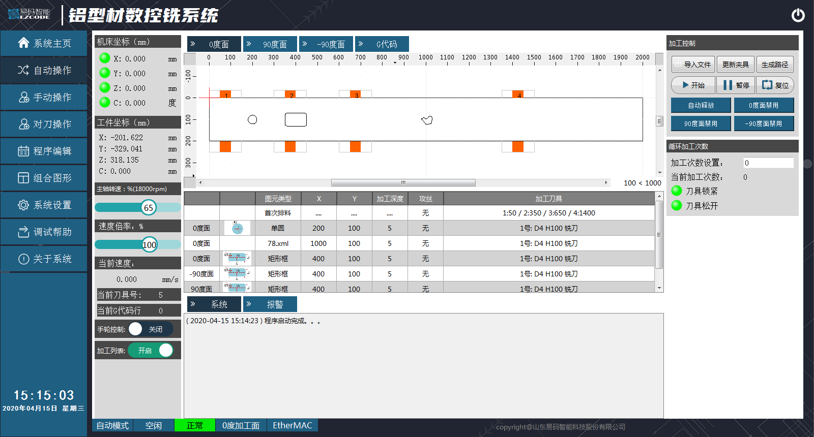 該系統采用EtherCAT實時以太網總線,基于公司自主研發的KRMotion運動控制平臺,使用數控CNC功能進行設計,滿足復雜加工要求,該系統倍廣泛應用于鋁型材鉆銑設備,主要應喲名會員幕墻、門窗鎖具的鉆銑加工。