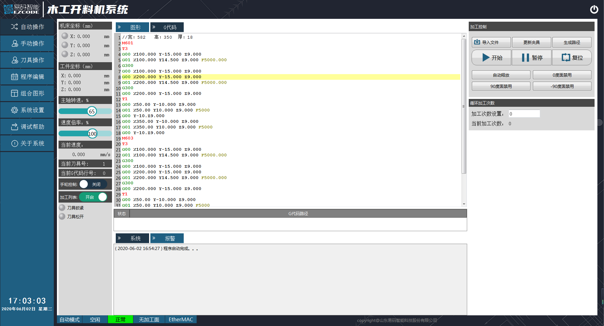 木工開料機系統 | V1.0 | 3軸數控系統,適用用于4工序開料機 |