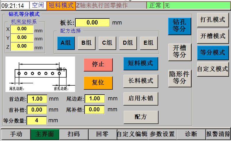 該系統采用EZ-20E控制器,搭配AX412Pc運動接口卡,具有數控CNC功能,可滿足復雜加工要求,已廣泛應用于板式家具側打孔設備。特點